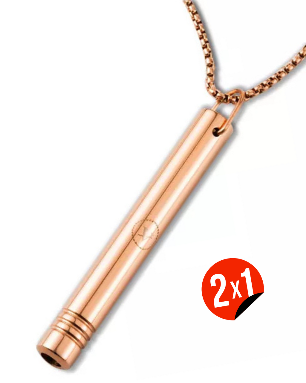 El diseño especial de nuestro collar incorpora un centro estrecho que te ayuda a ralentizar la exhalación, brindando un alivio inmediato y un efecto relajante en tu cuerpo y mente.