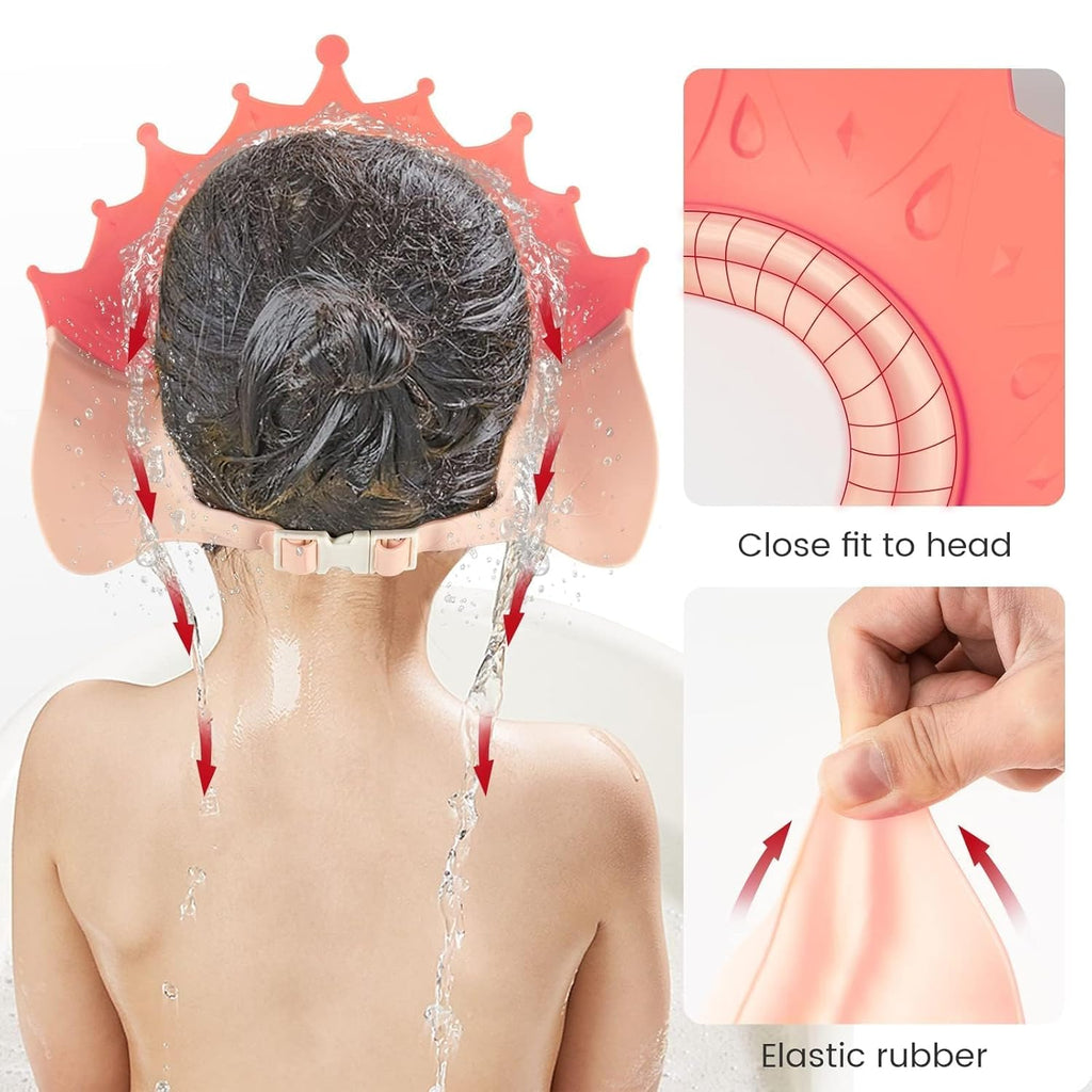 Hacelo divertido y sin lágrimas. Este gorro protege los ojos y orejas del agua y shampoo gracias a su ala ancha que desvía el agua hacia atrás.