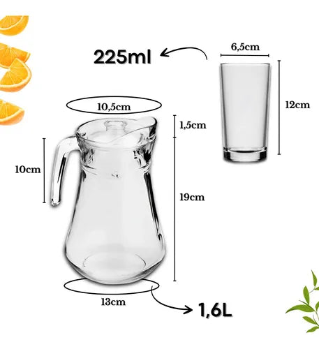Este hermoso juego de jarras y vasos aportará elegancia y sofisticación a tu mesa. Ideal para servir jugos, agua, cócteles y otras bebidas de tu preferencia. La jarra presenta un hermoso acabado y un diseño compacto que ocupa poco espacio, perfecto para el uso diario.